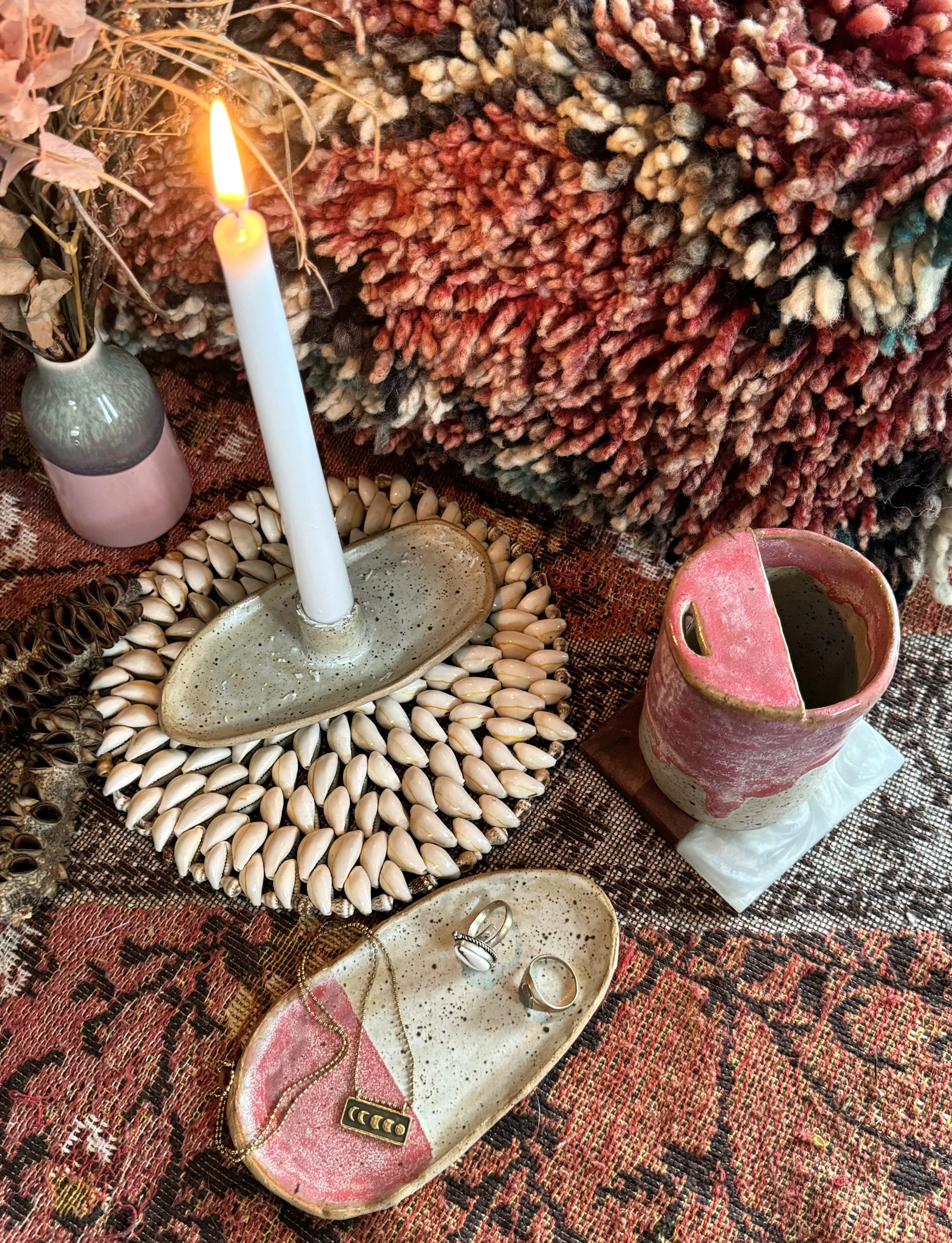 Shop Pottery Half moon jewellery dish $75.00 Sold out Cowgirl incense + match holder duo $50.00 Sold out Jupiter vase $79.00 Coffee cup in copper/turquoise $35.00 Sold out Turquoise Reef Vase $79.00 Mini bud vase $45.00 Raspberry Travel Mug $60.00 Turquoise-green ceramic dish $75.00 Pottery that loves you back!💗